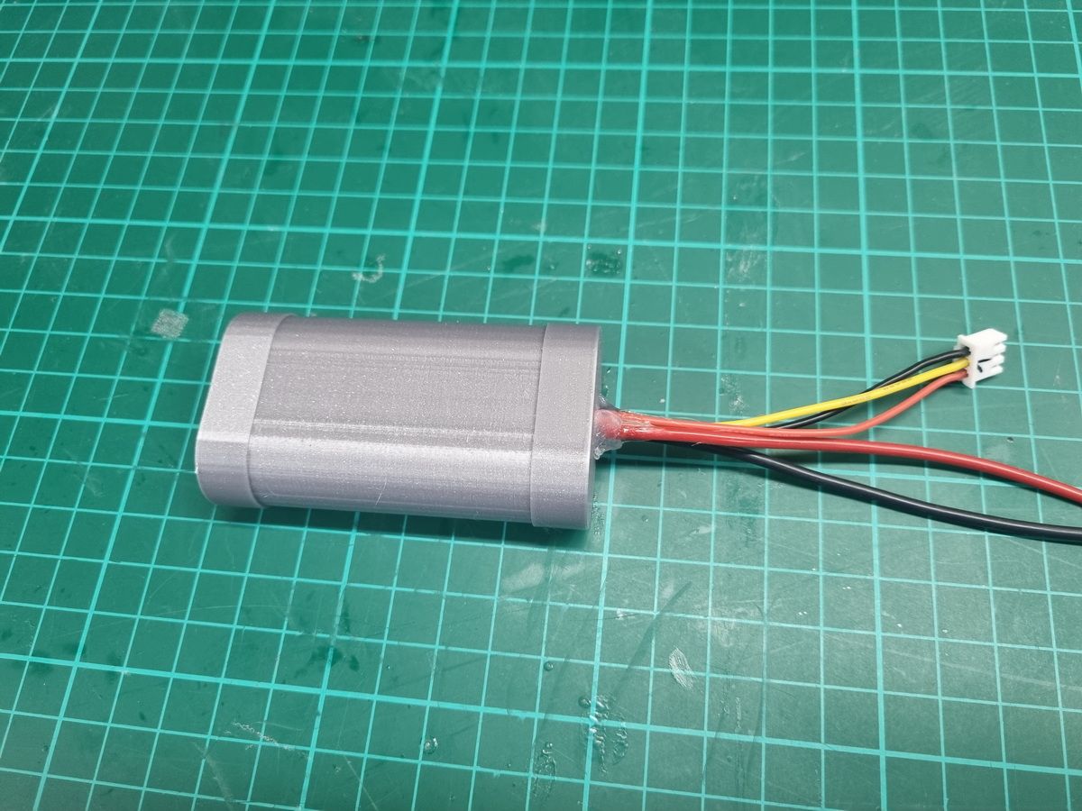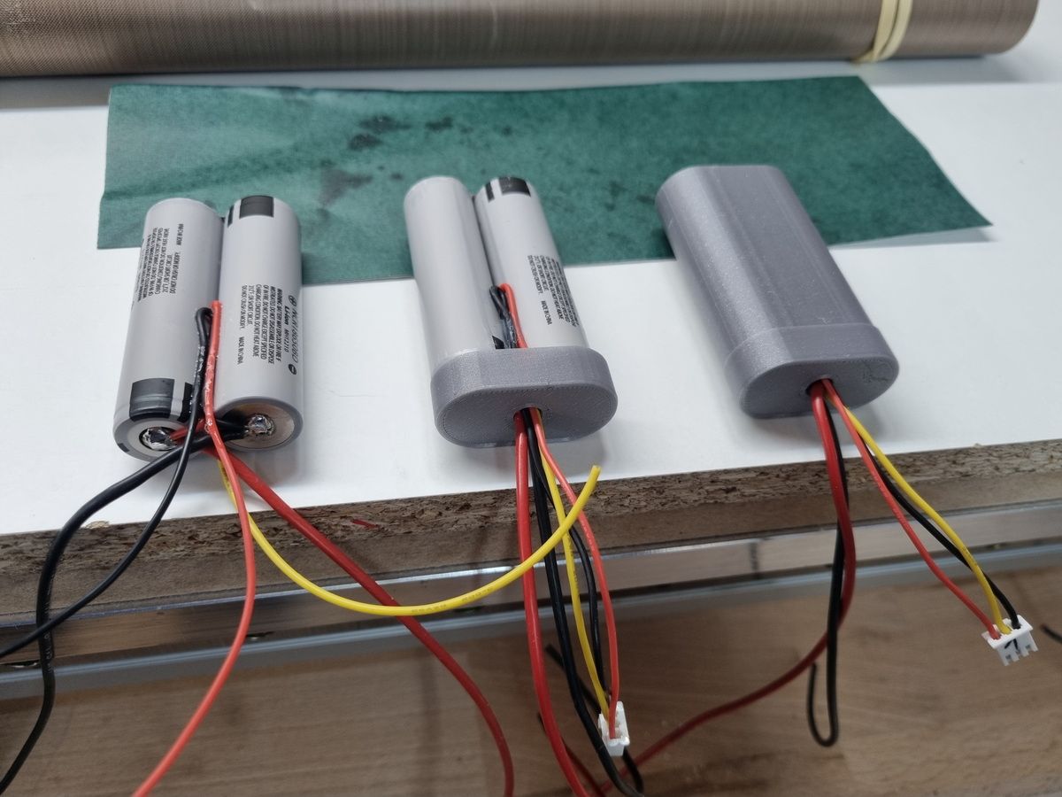 Nach einigen Überlegungen entschied ich mich zum Selberbauen. Ich bestellte einige Rundzellen Typ 18650. Da diese doch ein wenig steif sein sollten und vor Kurzschluss geschützt werden mussten habe ich ein Gehäuse entworfen und mit dem 3D-Drucker verwirklicht.