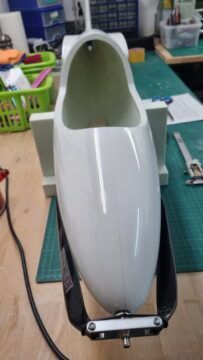Der FES-Antrieb von Torcman wurde eingepasst und Anschließend die Spanten fest verklebt.