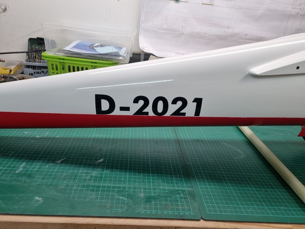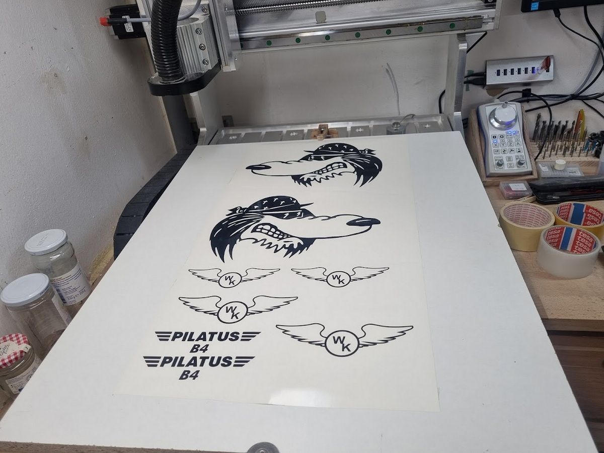 Auf der CNC-Fräse die Folienaufkleber für das Modell geschnitten.