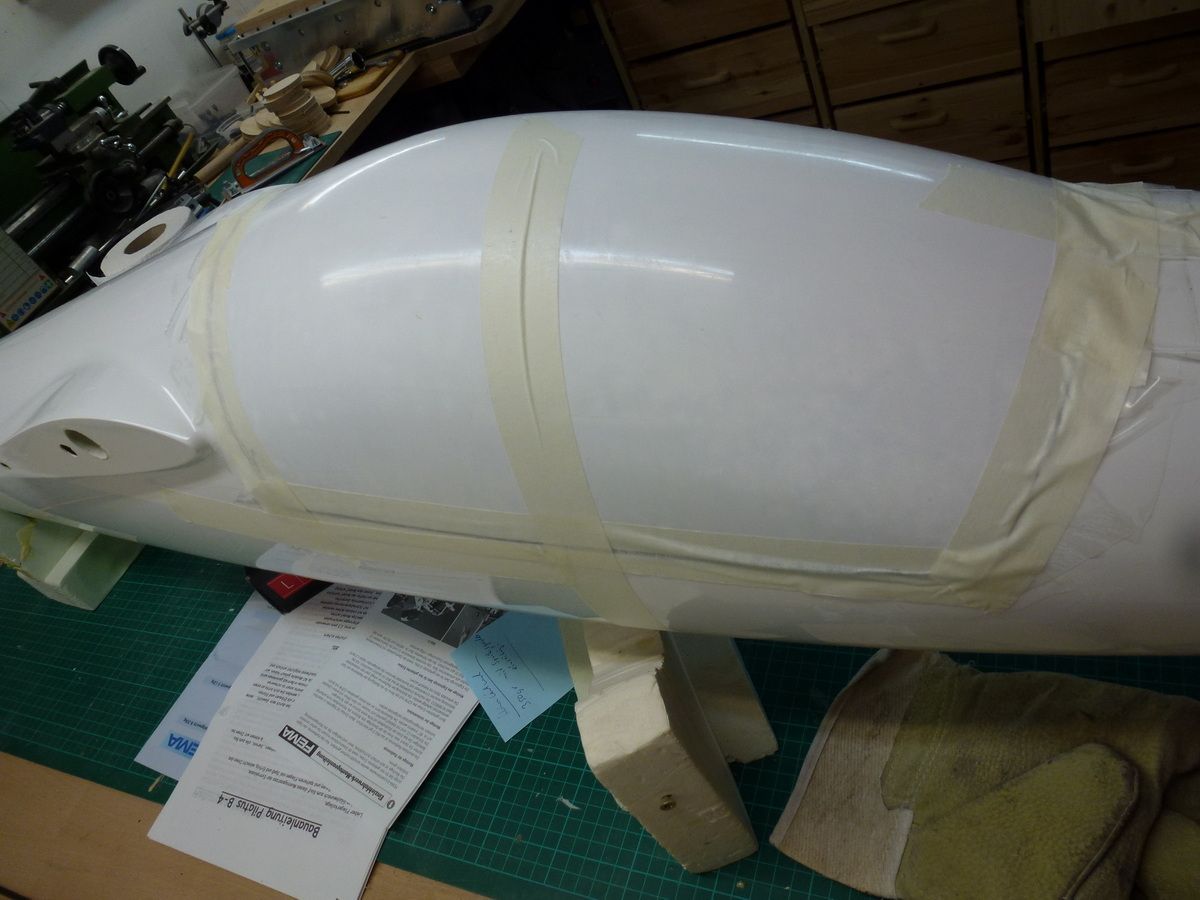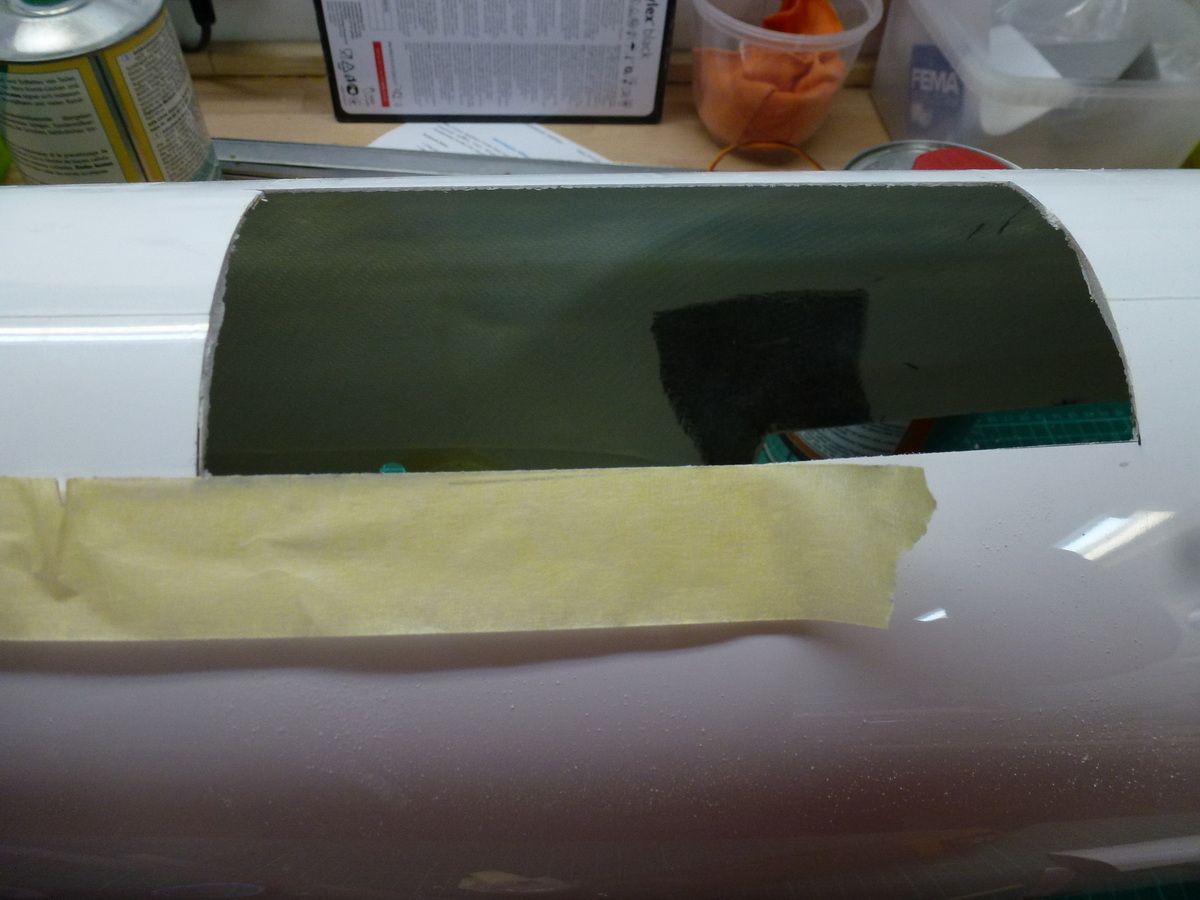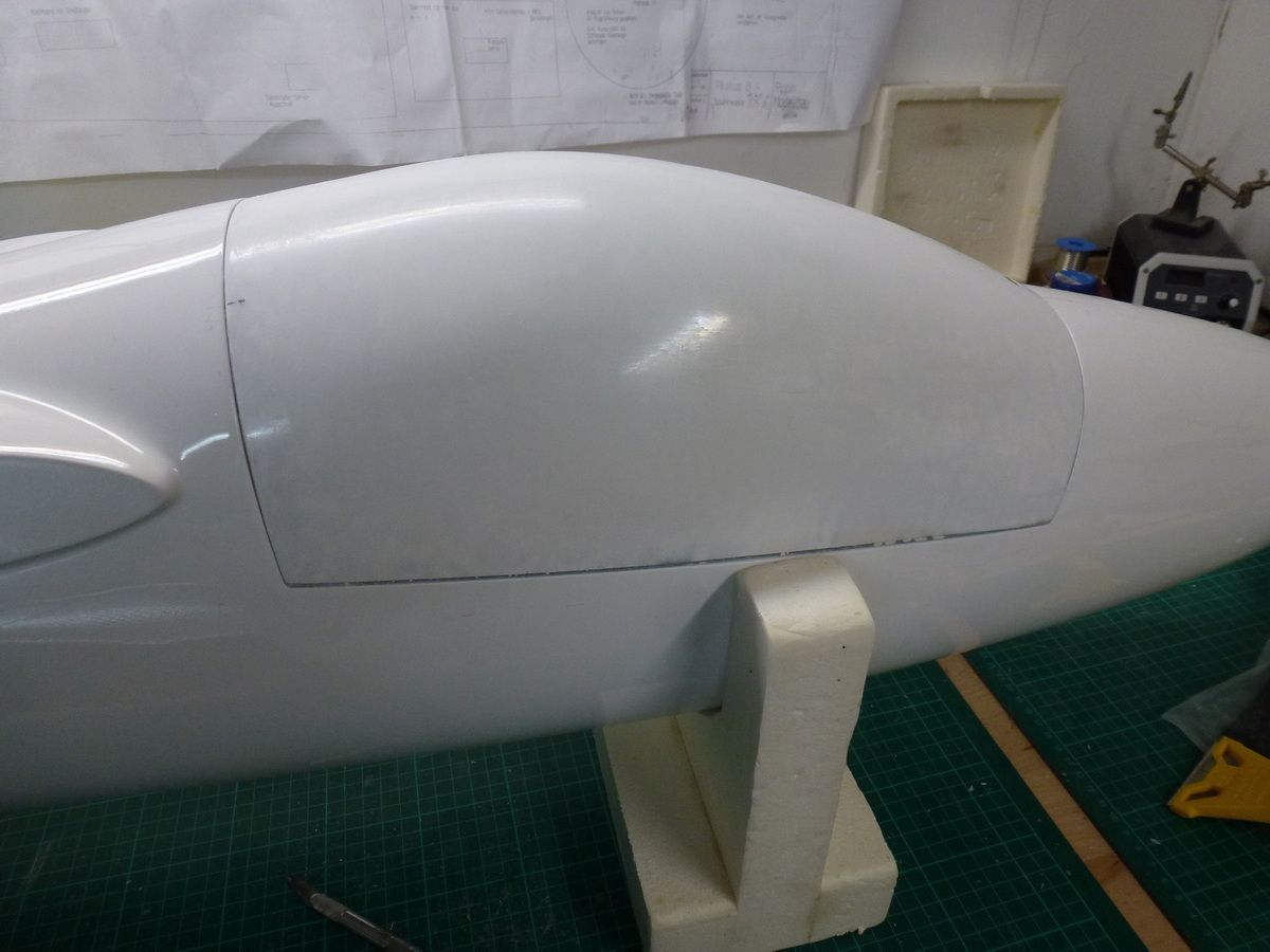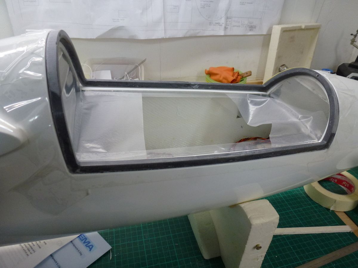 Den Kabinenrahmen eingepasst und anschliessend die Kabinenhaube zurechtgeschnitten und mit dem Kabinenrahmen verklebt.