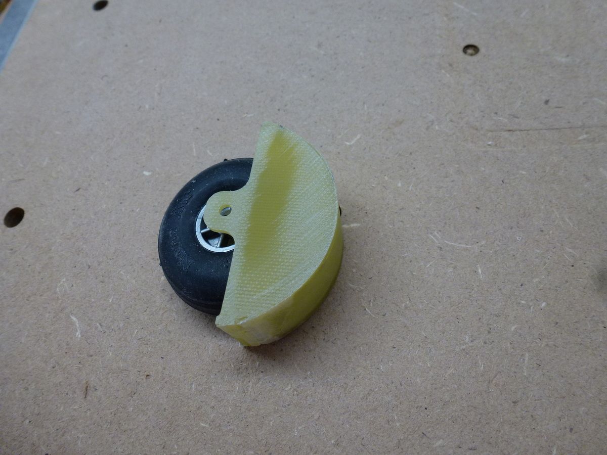 Aus GFK einen Radkasten gebastelt und mit dem Rad ins Heck eingeklebt.