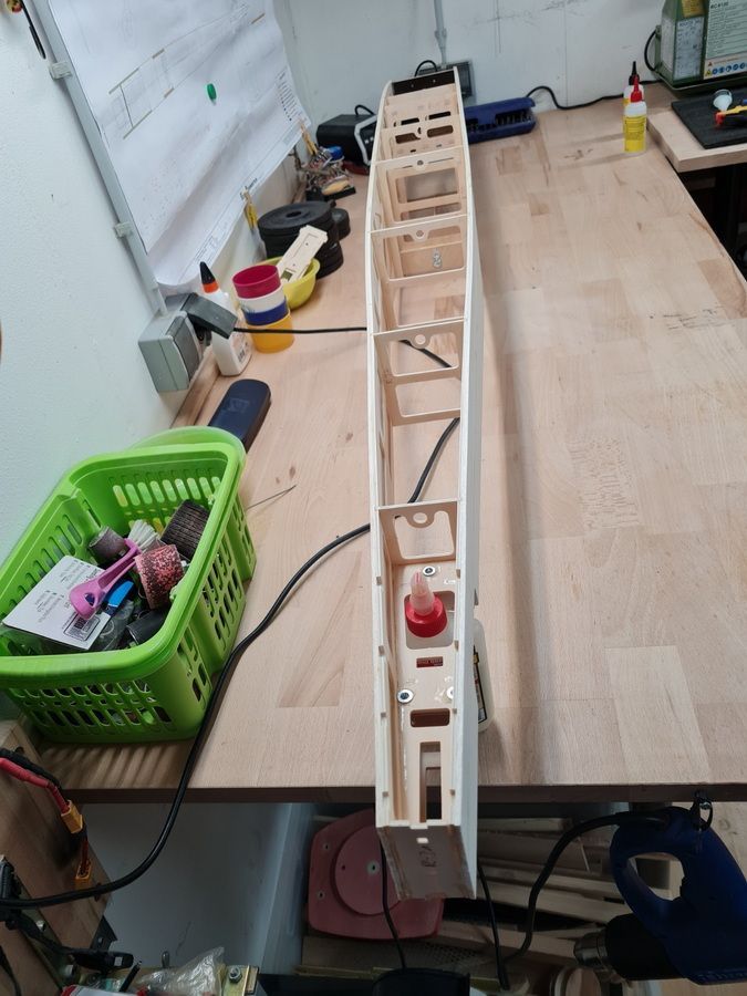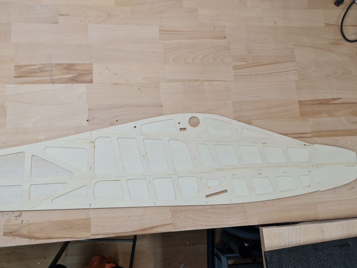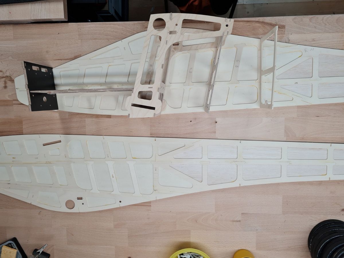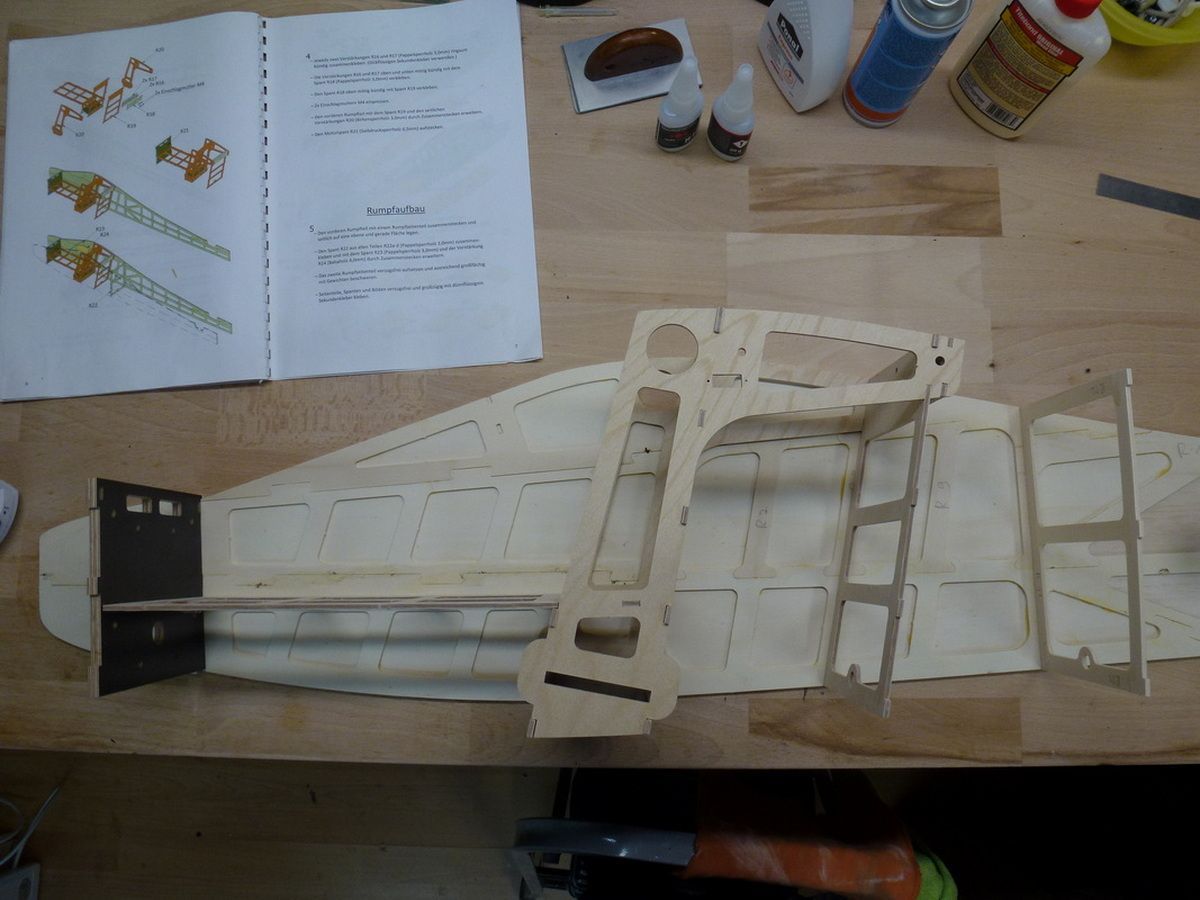 Als erstes habe ich den Rumpf zusammengebaut. Die Teile waren sehr gut gefräst und paßten genau ineinander.