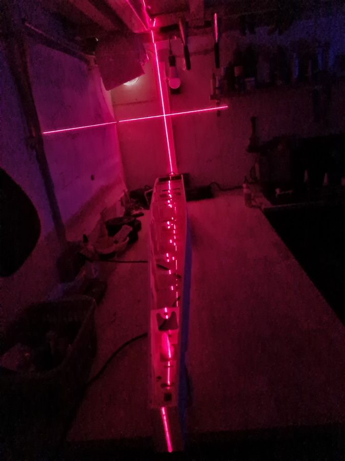 Beide Seiten zusammengefügt und vor dem verkleben mit dem Laser ausgerichtet.