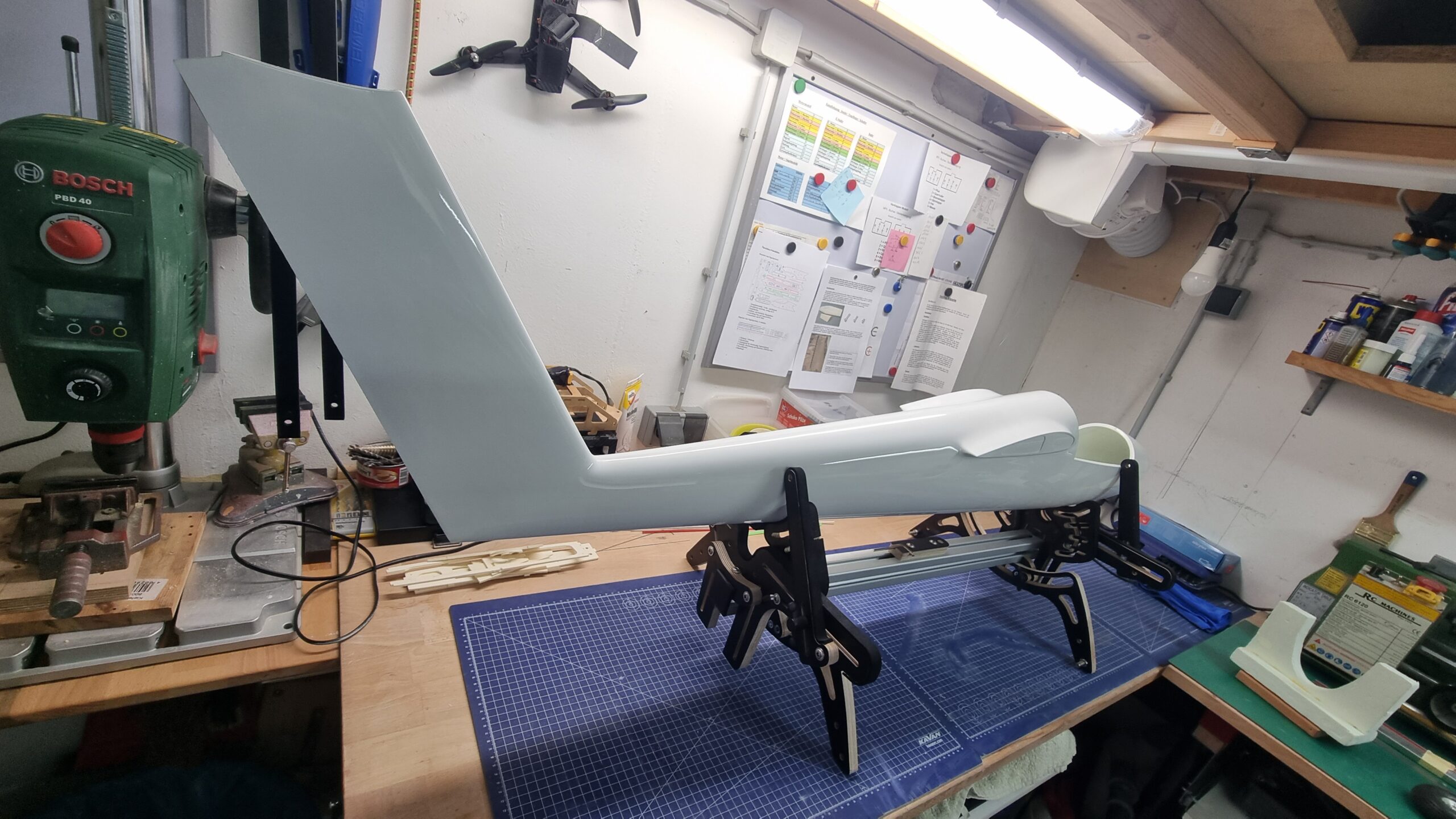 Als erstes wurde die Seitenflosse von innen verstärkt.