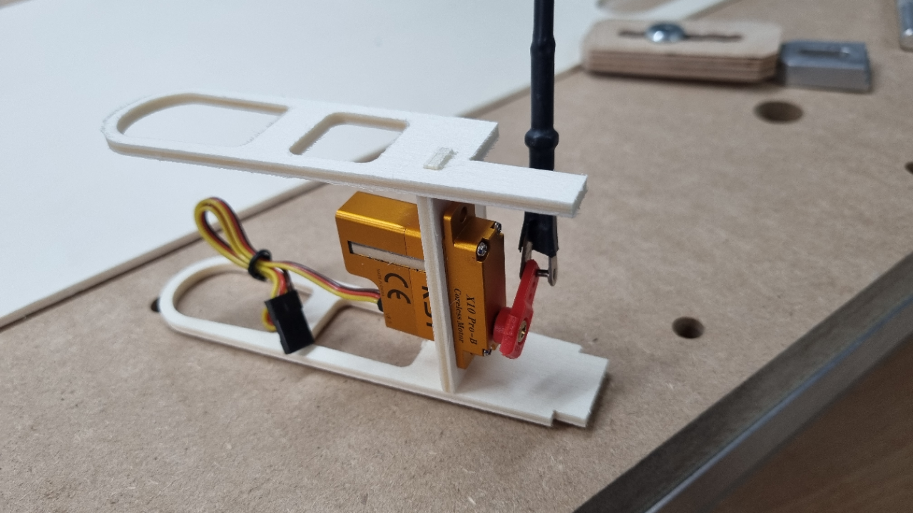 Für die Höhenruderanlenkung die Spanten gefräst, Servo eingebaut und in den Rumpf eingeklebt.